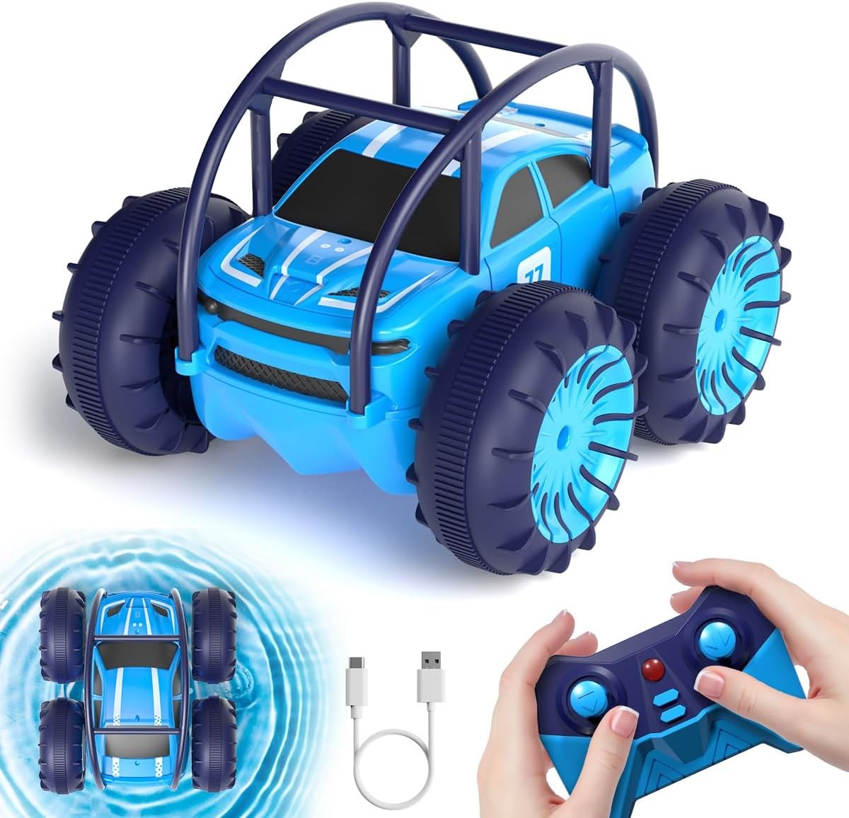 HOTUT Voiture télécommandée amphibie, 360°Rotation Capteur gestuel Stunt Car, 4WD RC Voiture Tout Terrain Etanche,Lumières Cool, Jouet Tout-Terrain Télécommandé pour Enfant, Cadeau d'anniversaire Noël
