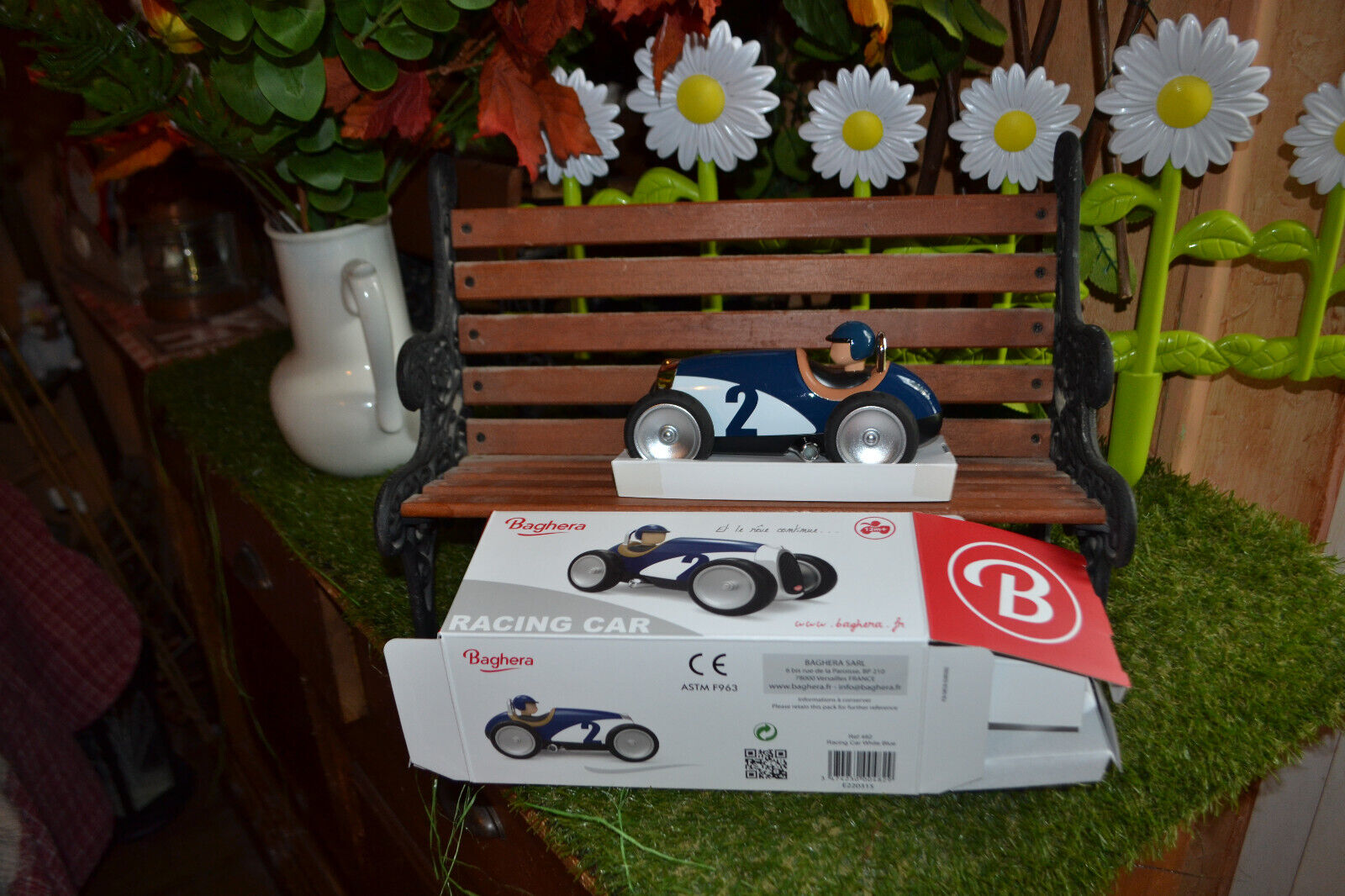 voiture neuve BAGHERA racing car neuf bleu avec le pilote dans une superbe boit