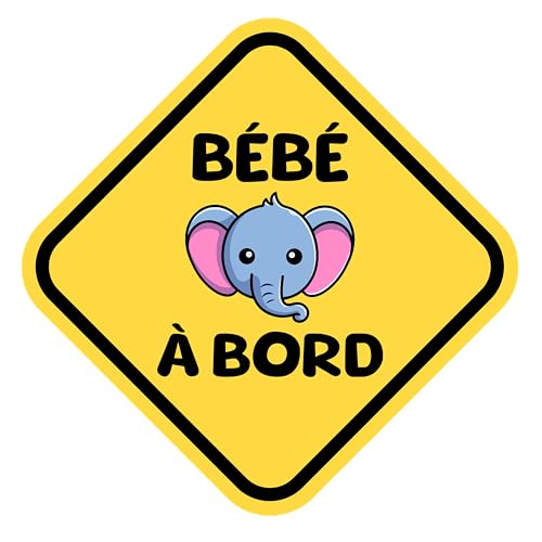 Autocollants Bébé à Bord Voiture, Bébé Éléphant 16 x 16 cm, Stickers Bébé à Bord Résistants aux UV et Waterproof, Bébé a Bord Voiture Facile à Appliquer, Accessoire Bebe à bord Sécurité Voiture