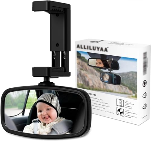 Retroviseur Voiture Bebe, Rotation à 360° Miroirs auto bébés, Type de Pince à Ressort pour Une Installation Facile, Miroir en Verre, Miroir pour Voiture pour Sécurité Sièges Arrière (1 Noir)