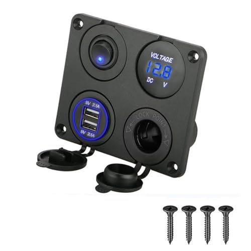 Alnicov Panneau de Commutation 4 en 1 pour Voiture et Yacht, avec Deux Ports de Charge USB, Prise Allume-Cigare, voltmètre et Interrupteur pour véhicules, Bateaux, Camping-Cars