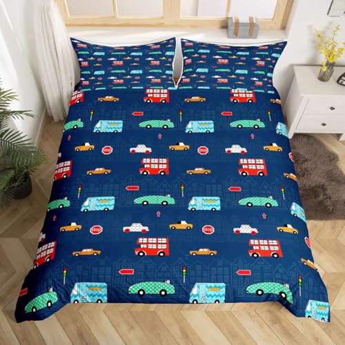 TKCQX Voiture Housse de Couette 135x200 Enfant Fille GarçOn Ado Parure de Lit 1 Personne Cars Housse de Couette Enfant en Microfibre avec Fermeture éClair + Taie d'oreiller 65x65 cm