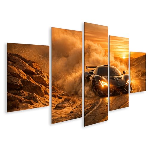 islandburner Tableau sur toile Voiture de sport Drift dans le désert au coucher du soleil - 5 pièces
