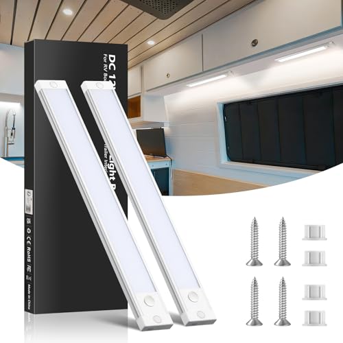 Obeaming 12V Barre de Lumière Intérieure à LED Eclairage Voiture Lumineuse 4,5W pour Camping-Car Caravane Bateau Van avec Interrupteur Marche/arrêt CRI 95 470lm (5000K/2 PCS)