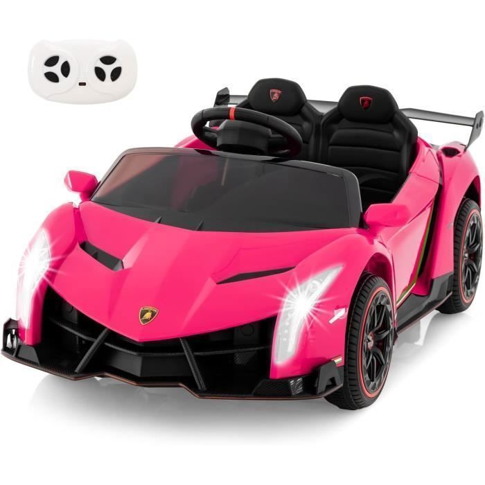 Giantex voiture electrique enfant 3-8 ans 12v,1 place charge 30kg lamborghini,télécommande 2,4 g,ports aux et usb,multimédia,rose
