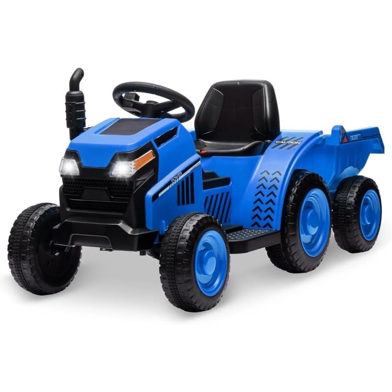 Lunsy - Tracteur ÉLectrique Enfants avec Remorque Amovible, 6V Voiture ÉLectrique Mit Klaxon, usb, Lumières led et Musique, pour Les Enfants 3+,Bleu