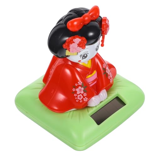 OFFIGAM Figurine Kimono Solaire à Tête Oscillante pour Voiture, Poupée en Plastique Rouge Assise, Décoration Intérieure Automobile, Accessoire Bureau Original, Ornement Ludique