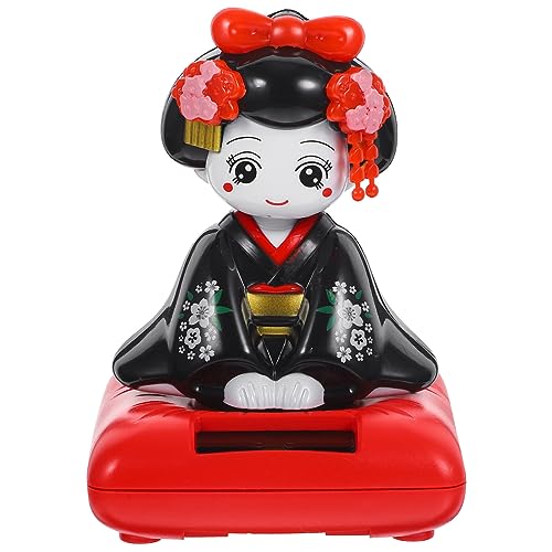 EXCEART Poupée Kimono Japonaise Solaire Secouant La Tête Ornement Décoratif pour Voiture Et Bureau Figurine De Table Créative 3X3X4 Pouces