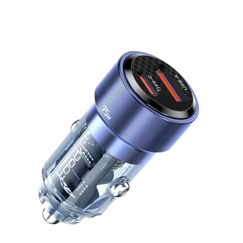 TOOCKI - Double Prise USB 75W, 1x USB-A et 1x USB-C PD 45W, pour Prise 12V/24V Voiture, Design Transparent, Charge Protégée, Compatible iPhone, Samsung, iPad, MacBook, Galaxy, Nintendo Switch