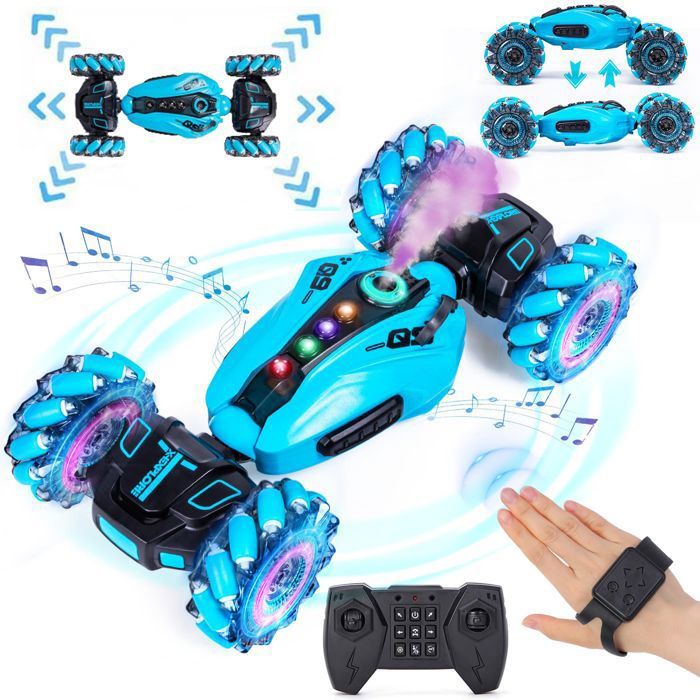 Voiture Télécommandée Tout Terrain360°RotationVoiture Radiocommande pour Garçon Enfant 8-12 Ans bleu