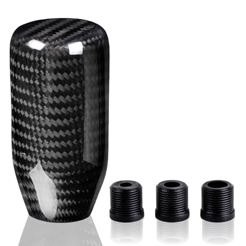 muge racing Pommeau de levier de vitesse en fibre de carbone modifiée pour la plupart des automobiles avec 3 adaptateurs (fibre de carbone, long, noir)