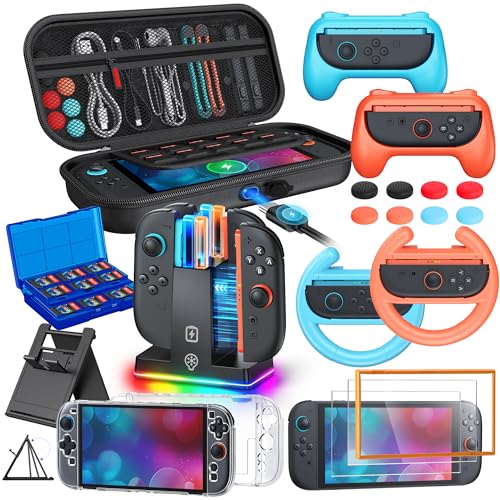 Ensemble de 23 accessoires pour Switch 2 2025, kit de rangement et de transport WAXITY avec station de recharge Switch 2, poignées, volant pour Joycon, housse de protection, protection d'écran