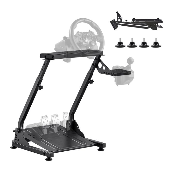 GTPLAYER Support de volant Sim Racing Steering Wheel Stand pour G920 G29 G25 G27 G923 T300RS avec support de levier de vitesse, Hauteur et angle réglables