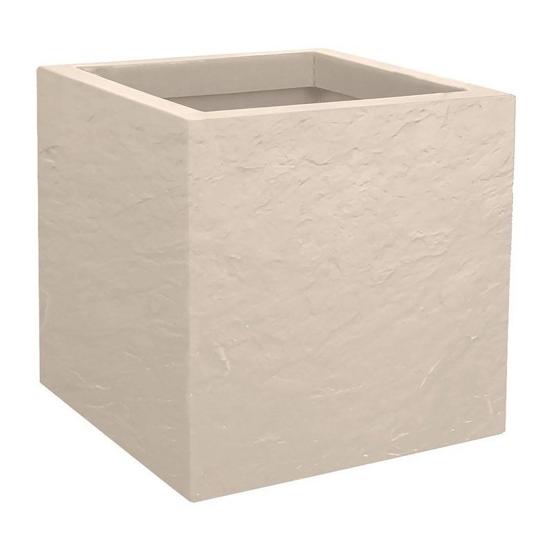 Jardinière Carrée Volcania Effet Pierre 49,5 X 49,5 X 49,5 Cm - 57 L - Beige Calcaire - Eda