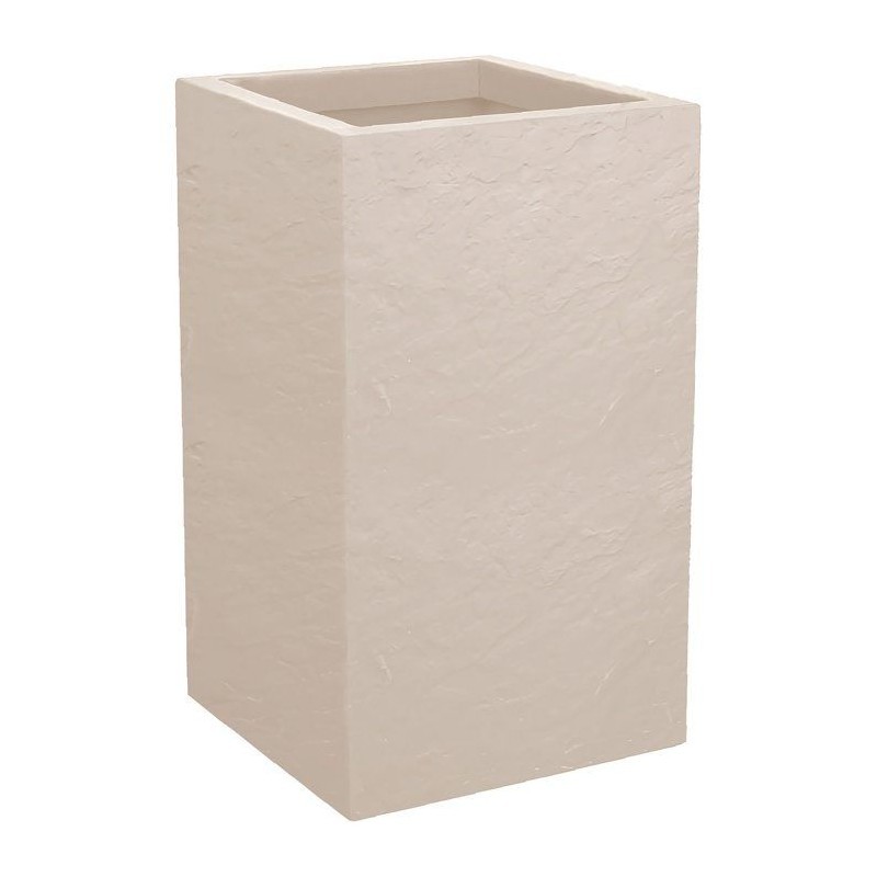 Pot de fleurs carré Haut Volcania - 39,5 x 39,5 x 80 cm - 31 L - Beige calcaire - Eda