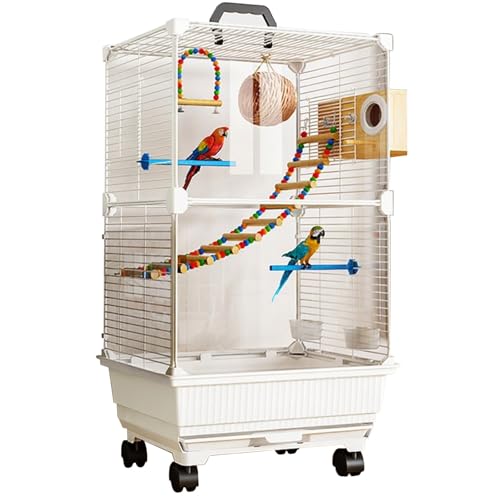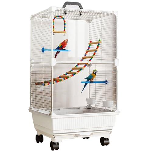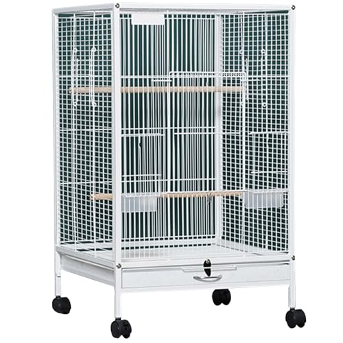 30inch Grande Cage À Oiseaux Exterieur, Cage Oiseau Perroquet Transport avec Roultes Volière À Oiseaux Canaris pour Perruches, Conure, Pinson(White)