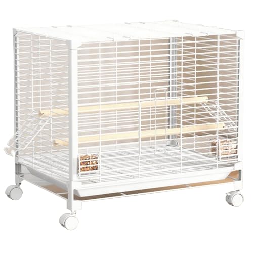 Cage À Oiseaux Canari, Cage Perroquet Transport Exterieur sur roulettes Métal Volière Oiseaux pour Perruches, Canaris(White,Small(7pcs))