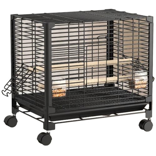 Yaheetech Volière Intérieur Cage Oiseaux Exterieur Métal pour Perruches Perroquets Pinsons Cockatiels Conures Inséparables Canaris 77,5 x 46,5 x 46 cm Noir