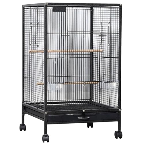 30inch Grande Cage À Oiseaux Exterieur, Cage Oiseau Perroquet Transport avec Roultes Volière À Oiseaux Canaris pour Perruches, Conure, Pinson(Black)