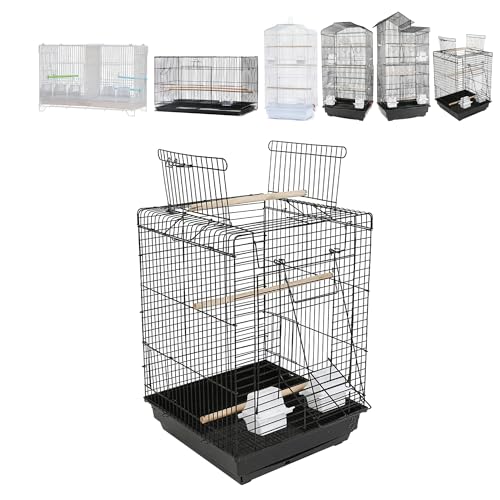 Cage À Oiseaux Canari, Cage Perroquet Transport Exterieur sur roulettes Métal Volière Oiseaux pour Perruches, Canaris(Black,Medium(9pcs))