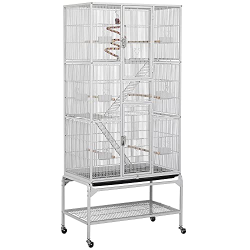 70 inch Grande Cage À Oiseaux Volière, Cage Perroquet Interieur sur Roultes, Cage D'elevage pour Oiseaux pour Perruches, Canaris (White)