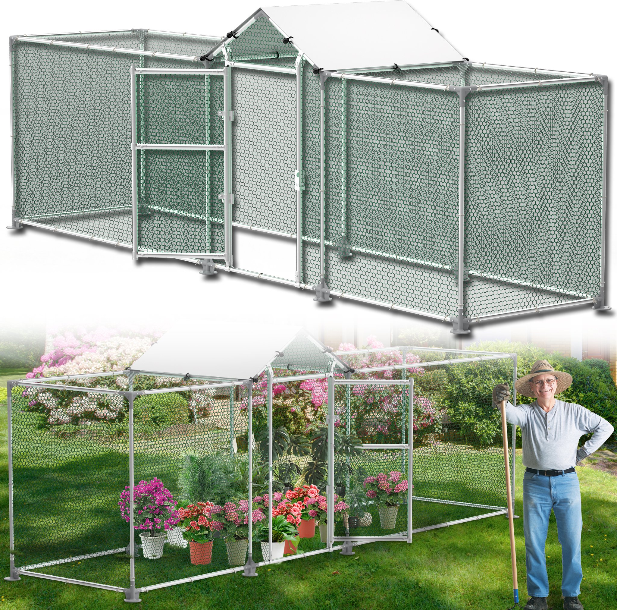 LARS360 Enclos extérieur Poulailler 3 x 8 x 2 m Outdoor Poulailler Toit Poulailler Acier galvanisé Petit parc animalier Enclos extérieur avec protection solaire Cage à poules Volière,PE