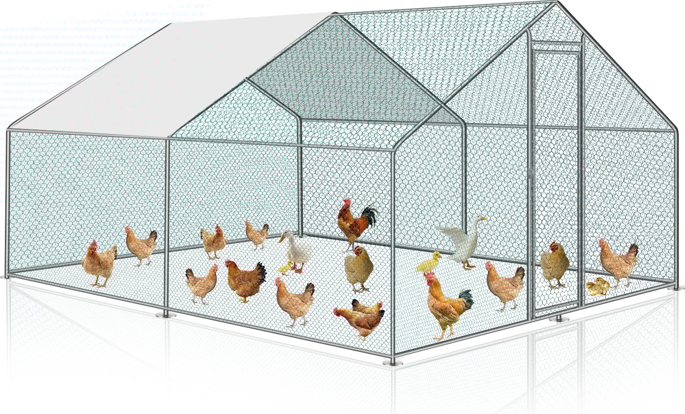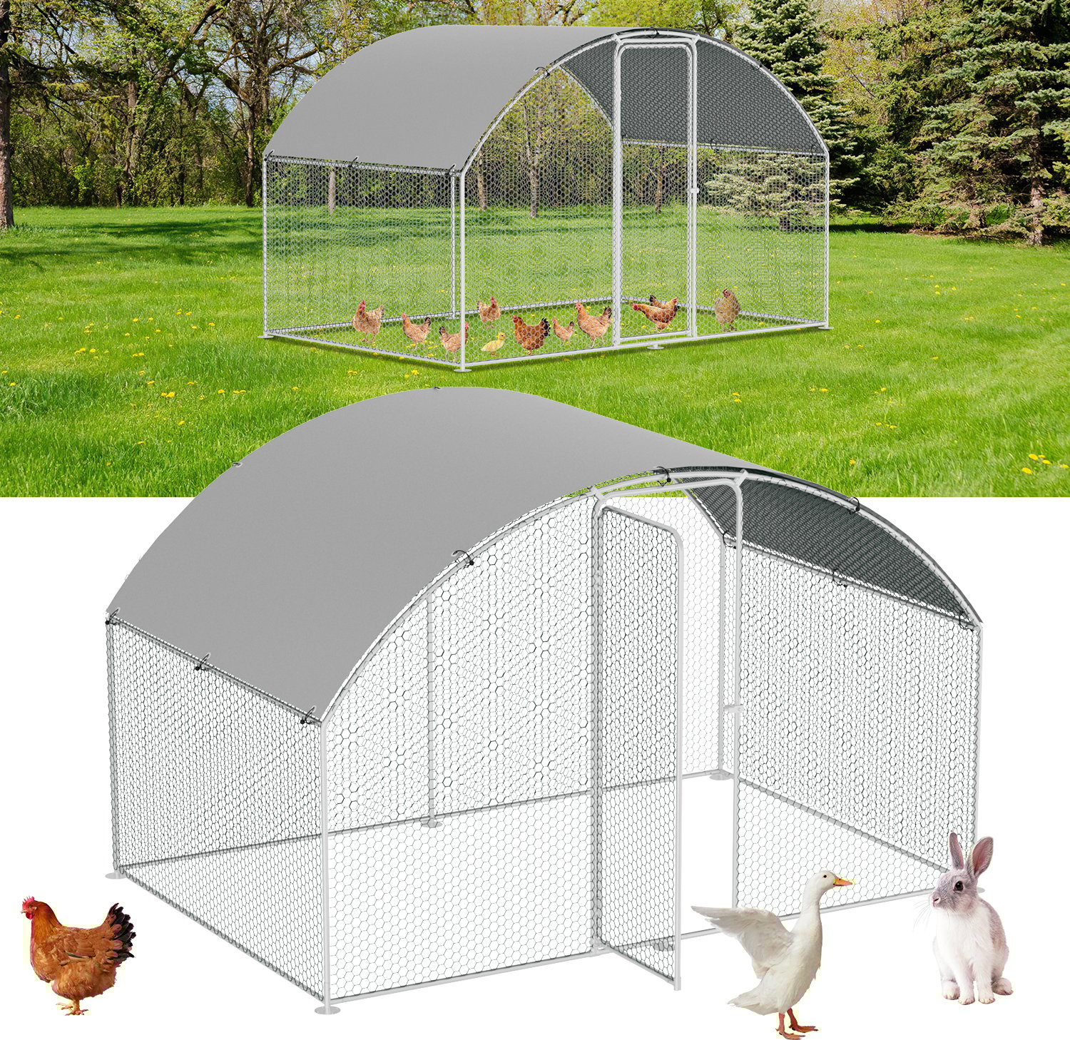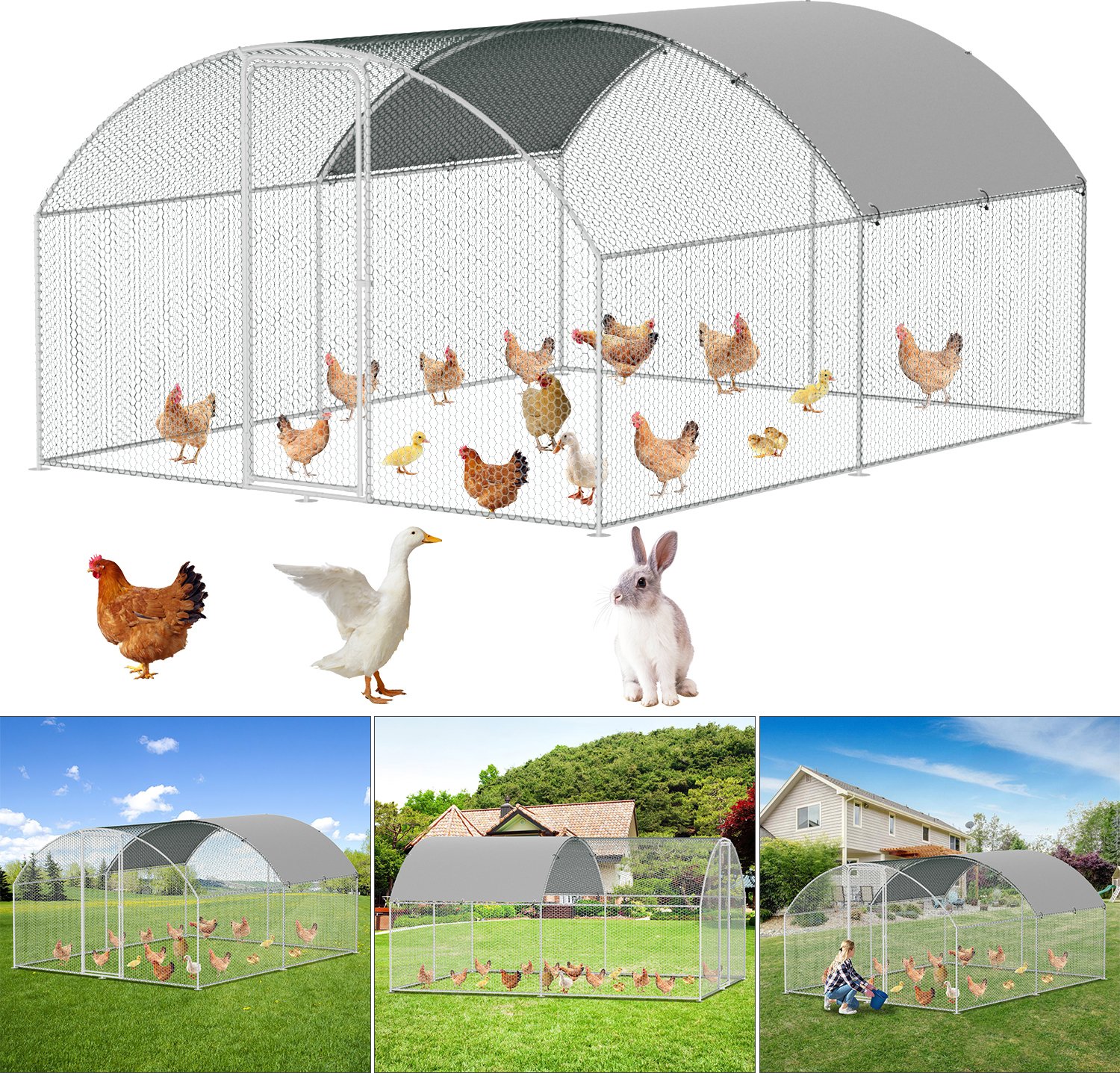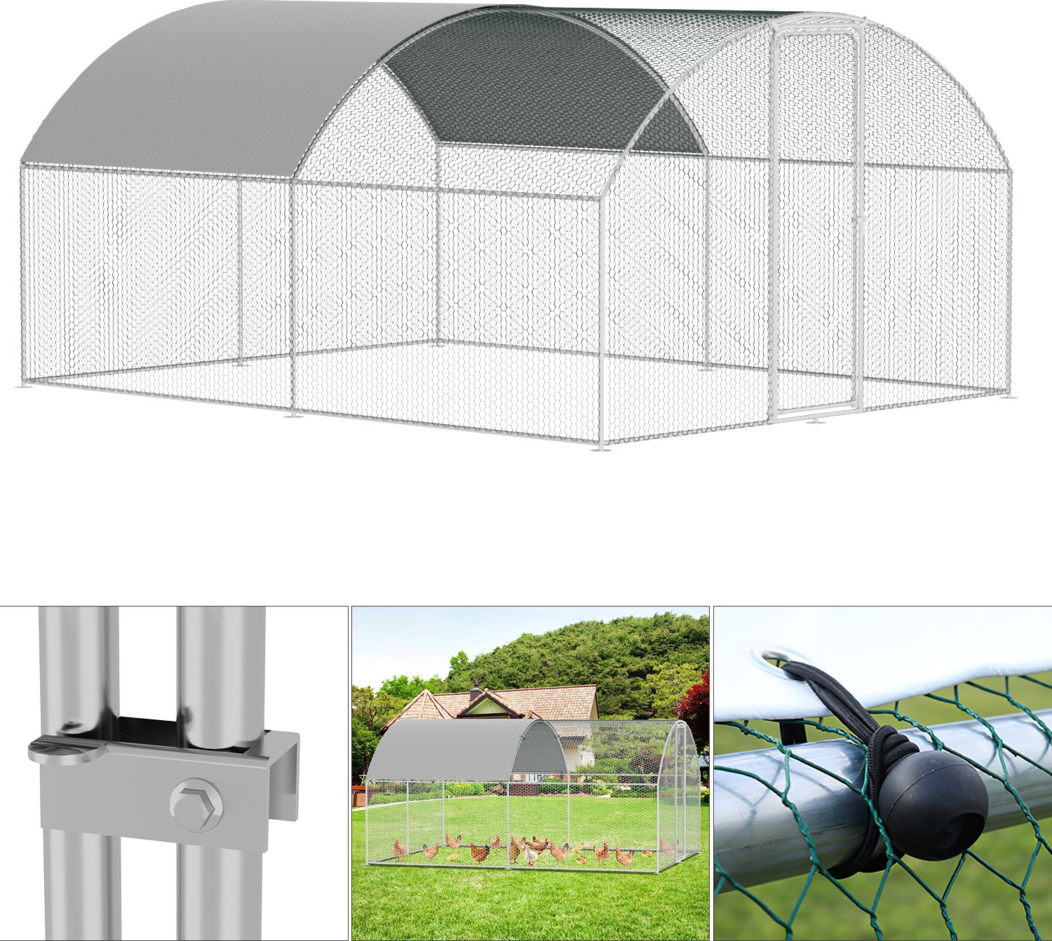 Clanmacy Enclos Poulailler Toit en dôme 3 x 4 x 2 m Outdoor Poulailler Toit Poulailler, Acier galvanisé Enclos pour petits animaux avec protection solaire Cage à poules Volière,PE