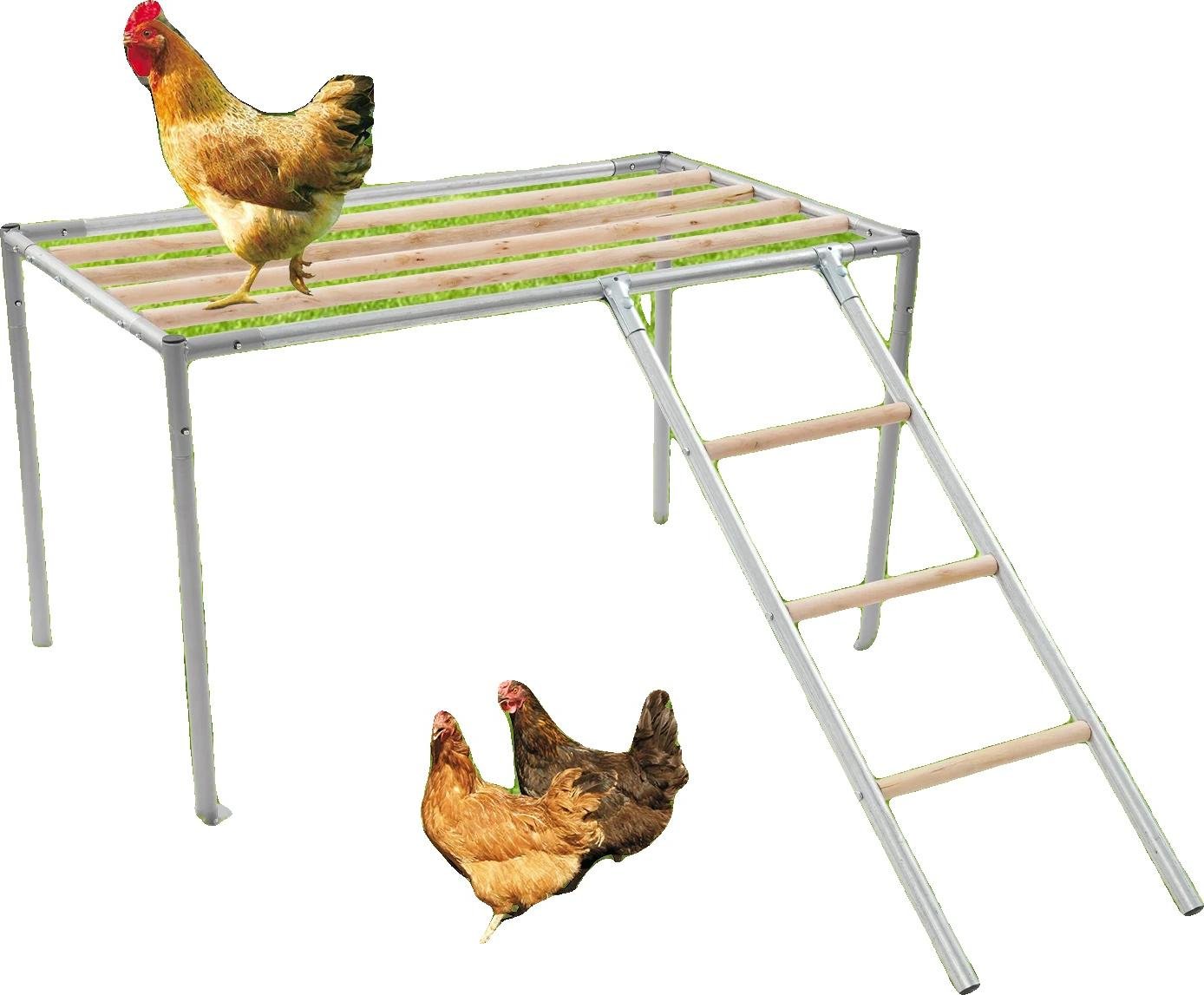 Volière pour poules, tube galvanisé et bois d'eucalyptus, capacité maximale : 10 poules adultes, diamètre de la base d'installation : 92 mm, conception autonome, assemblage requis