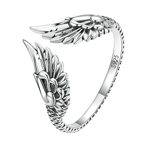 Generisch Anneaux en macramé en métal noir simple rétro bague ailes des anneaux voyage à travers la terre du milieu guerre, taille unique, Argent, Pas de pierre précieuse