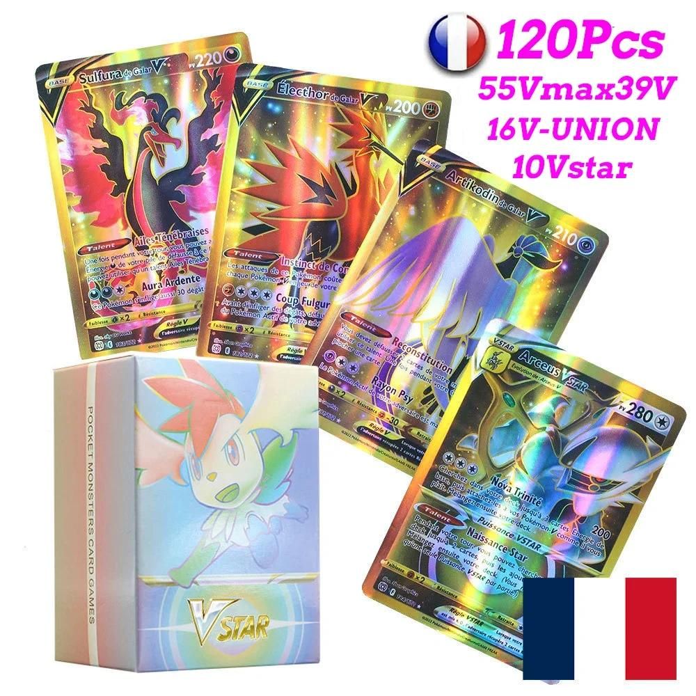 Kadel-20-100 Pièces Nouvelles Cartes Pokemon Anglais Français Espagnol Gx Mega Ex Tag Équipe Vstar Jeu Carte De Combat Offre Spéciale Carte De Collection Cadeau Pour Enfants,Vstargxvmax V-French,