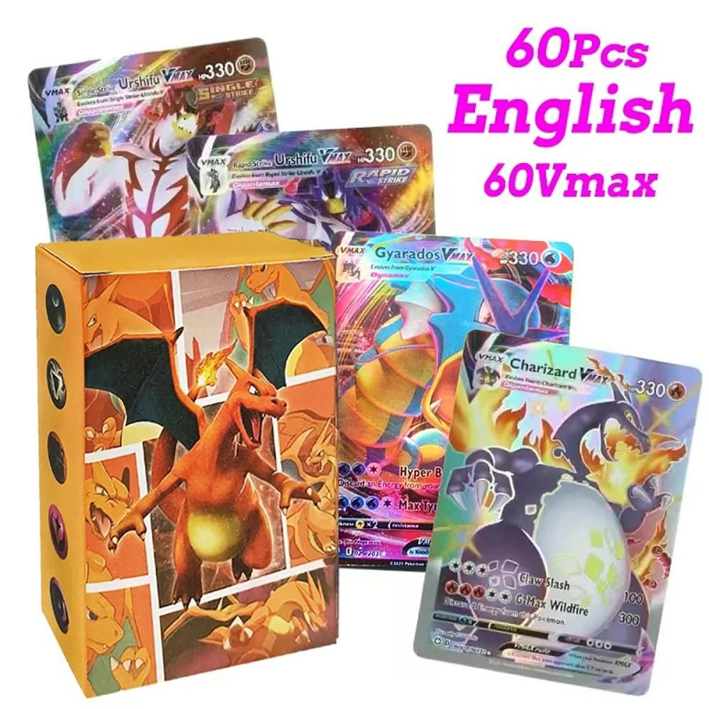 Kadel-20-100 Pièces Nouvelles Cartes Pokemon Anglais Français Espagnol Gx Mega Ex Tag Équipe Vstar Jeu Carte De Combat Offre Spéciale Carte De Collection Cadeau Pour Enfants,60pcs Vmax,
