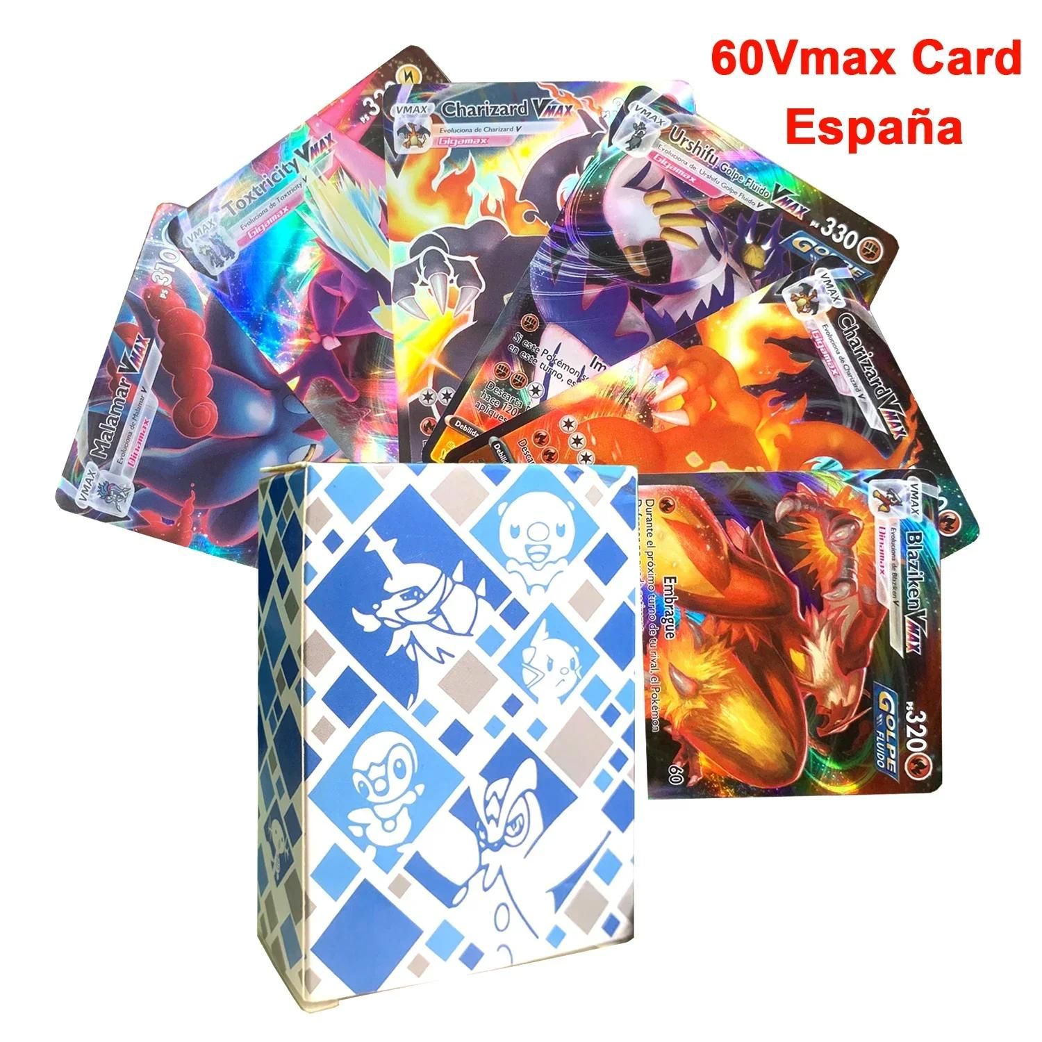 Kadel-20-100 Pièces Nouvelles Cartes Pokemon Anglais Français Espagnol Gx Mega Ex Tag Équipe Vstar Jeu Carte De Combat Offre Spéciale Carte De Collection Cadeau Pour Enfants,60pcs Vmax Spanish,