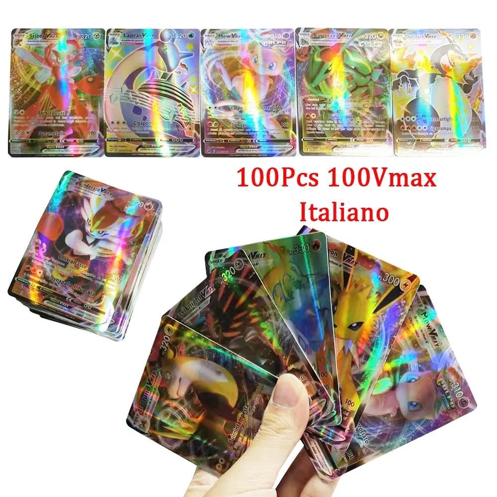 Kadel-20-100 Pièces Nouvelles Cartes Pokemon Anglais Français Espagnol Gx Mega Ex Tag Équipe Vstar Jeu Carte De Combat Offre Spéciale Carte De Collection Cadeau Pour Enfants,100vmax Italiano,