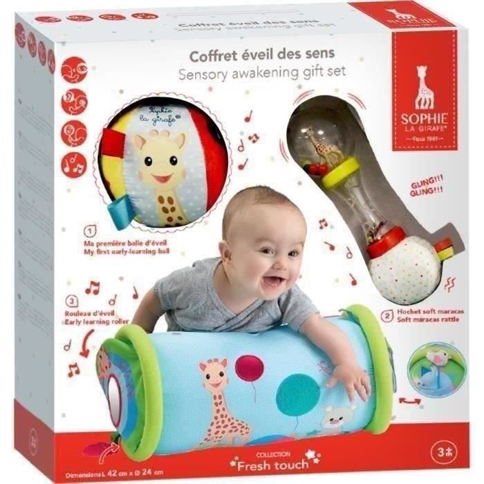 SOPHIE LA GIRAFE - Coffret Eveil des Sens Sophie la Girafe - 3 Jouets Indispensables - Eveille les 5 sens, l'ouie, le toucher, l'odorat, la vue et le gout
