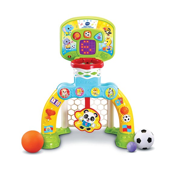 VTech - Super Centre Multisport Interactif, Structure de Motricité Bébé 3 en 1, But de Foot, Panier de Basket, Lancer de Balle sur Cible, Tableau de Score, Cadeau Enfant Dès 1 An - Contenu en Français