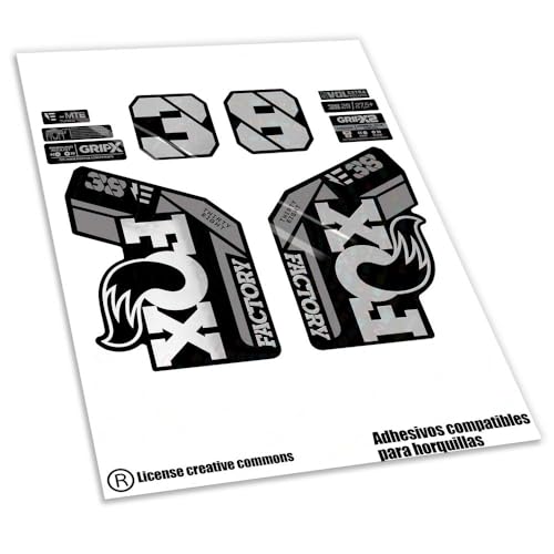 REF:VP437 Autocollants compatibles avec fourche FOX 38 EBIKE KASHIMA 2021-2025 VTT, stickers, adhésifs, vinyles pour vélos de montagne. (ARGENTÉ)