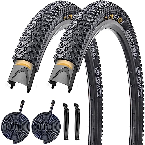 Pneus de vélo Pliables de 24/26/27,5 x 1,95 Pouces avec Protection Anti-crevaison de 3 mm pour VTT VTT VTT (26 x 1,95/2 pneus 2 Tubes)
