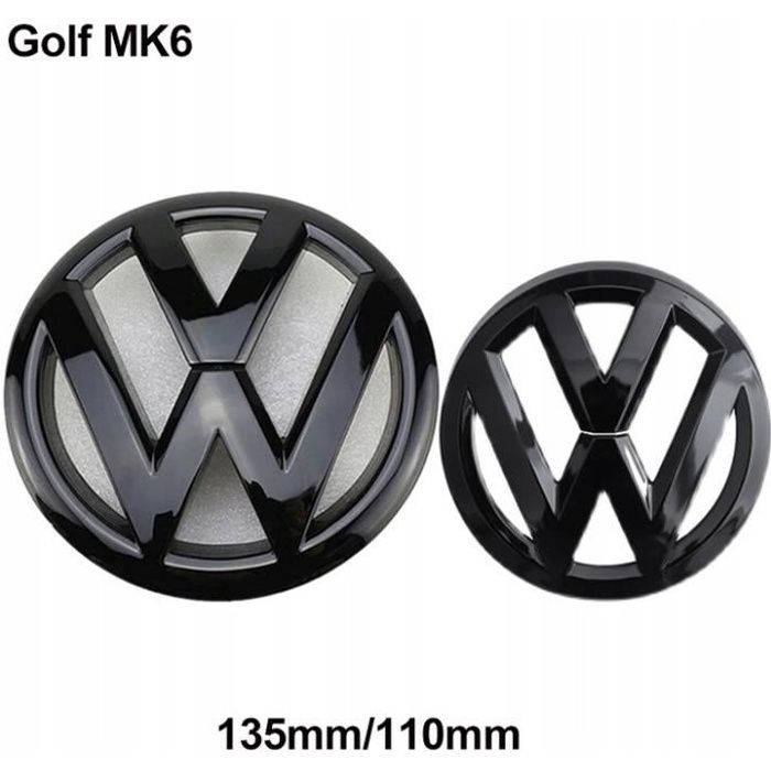2pcs Insigne logo emblème avant 135mm + arrière 110mm Noir brillant pour Volkswagen VW golf 6 VI MK6