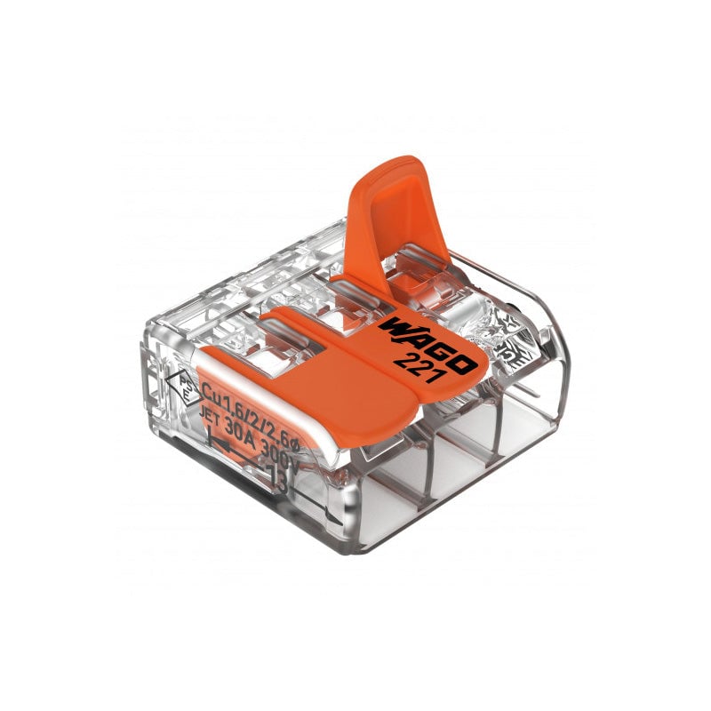 10 mini bornes à cliquet 3 entrées Wago (série 221) 0,14-4 mm²