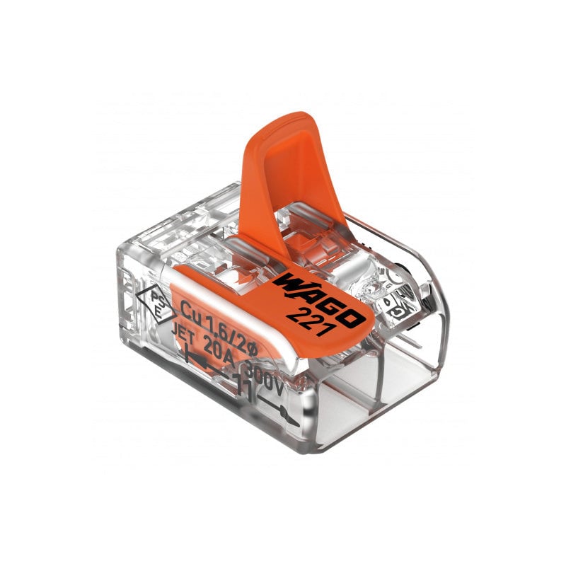 10 mini bornes à cliquet 2 entrées Wago (série 221) 0,14-4 mm²