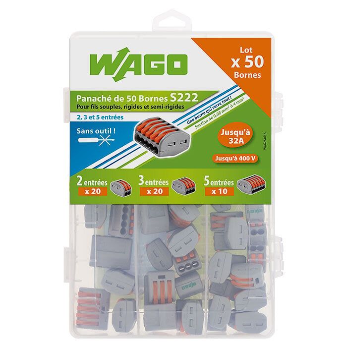 Boîte WAGO panaché 50 bornes - 30 x 2, 15 x 3, et 5 x 5 Entrées
