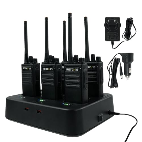 Retevis RT617 Talkie Walkie, Talkie-Walkie à Charge 6 Voies, Charge Efficace, Fente Amovible, Voyant de Charge, VOX, Talkie Walkie Professionnel pour Église, Fabricant (Noir, 6 Pièces)