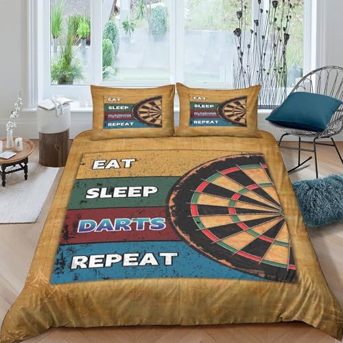 Darts Game Decor Ensemble De Literie résistante 3 pièces 3D Imprimée Léger Vintage rétro Wall Art Housse de Couette avec Taie d'oreiller Entretien Facile for Chambre Adulte Single(140x200cm)