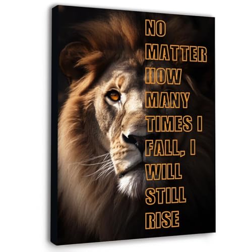 HGETJOHXEM Motivational Office Wall Art with Lion, Gwisml No Matter How Many Times I Fall I Will Rise Inspirational Canvas Painting for Workplace(Unframed,12x18inch(30x45cm))