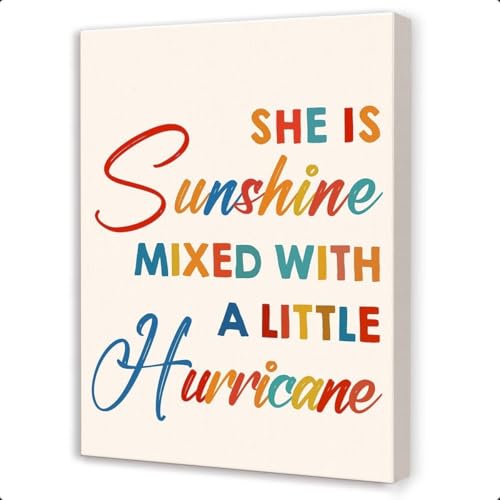 HGETJOHXEM Girls Bedroom Decor, She is Sunshine Mixed With a Little Hurricane Canvas Wall Art with Inspirational Quote for Nursery and Playroom(Framed,12x18inch(30x45cm))