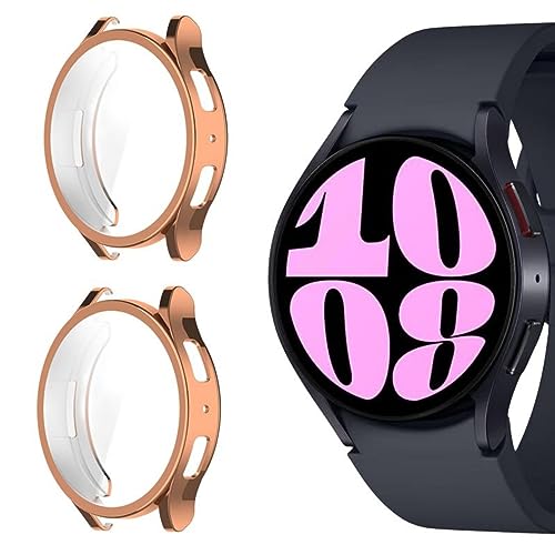 GIOPUEY [2 Pièces Coque Compatible avec Samsung Galaxy Watch 6 40mm, Soft TPU, Shock Resistant, Samsung Galaxy Watch 6 40mm Etui - Rose Gold+Rose Gold