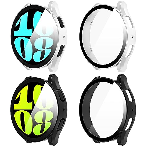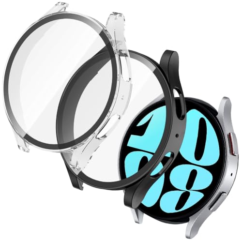 OFFCUP Coque Compatible avec Samsung Galaxy Watch 6 40mm, 2pcs Étui de Protection Complète avec Protection D'écran, Protecteur D'écran en Verre Trempé Coque Anti-Rayures Case (Noir+Transparent)
