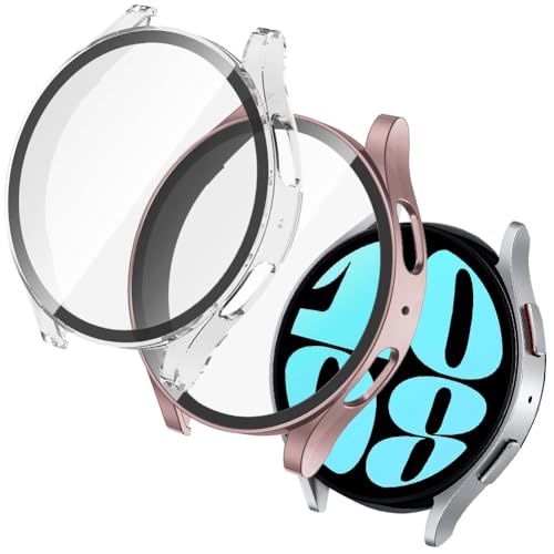 OFFCUP Coque Compatible avec Samsung Galaxy Watch 6 40mm, 2pcs Étui de Protection Complète avec Protection D'écran, Protecteur D'écran en Verre Trempé Coque Anti-Rayures Case (Rose+Transparent)