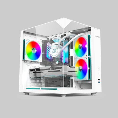 EMPIRE GAMING EC253 Boîtier PC Cube ATX/mATX/ITX, Verre trempé panoramique - 3 Ventilateurs ARGB préinstallés + contrôleur - GPU 330 mm - Ventirad 168 mm - Watercooling 240 mm - USB-C - Blanc
