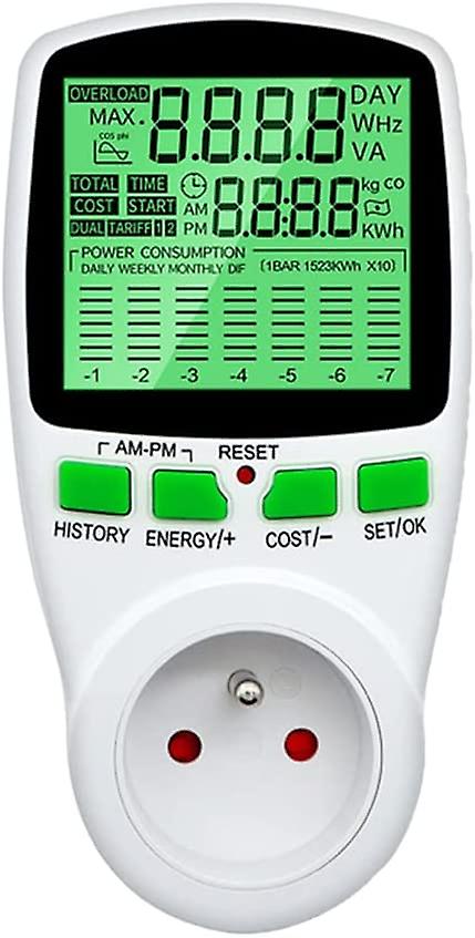 Wattmètre Prise Compteur D'énergie, Prise Compteur D'énergie Numérique, Écran LCD, 230 V, Puissance Maximale 3600 W, Courant Maximal 16 A, 75 X 147 X 75 mm, Surcharges De Protection, Blanc